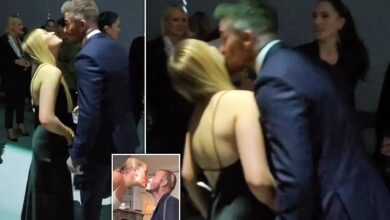 Hilarious moment Harper Beckham, 13, dodges dad David’s kisses after he hit defiantly defended himself for kissing her on the lips